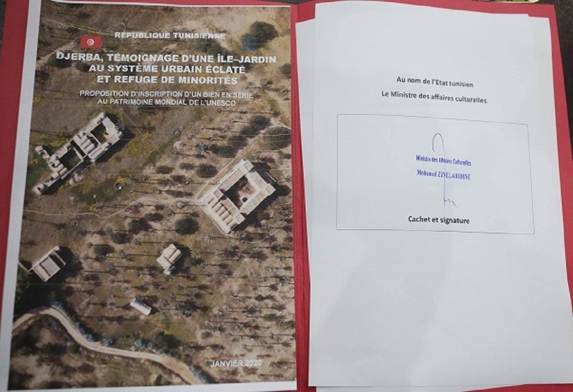 ذانيوز أونلاين/ أمضى يوم الاثنين 20 جانفي 2020 السيد محمد زين العابدين وزير الشؤون الثقافية باسم الدولة التونسية ملف ترشيح جزيرة جربة على قائمة التراث العالمي.