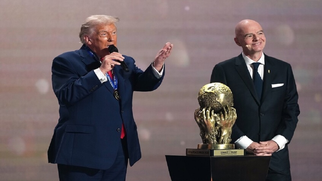 ذانيوز اونلاين// حصل الرئيس الأمريكي دونالد ترامب على أول جائزة سلام يمنحها الاتحاد الدولي لكرة القدم (فيفا) خلال حفل سحب قرعة كأس العالم لكرة القدم 2026، اليوم الجمعة في العاصمة واشنطن.
