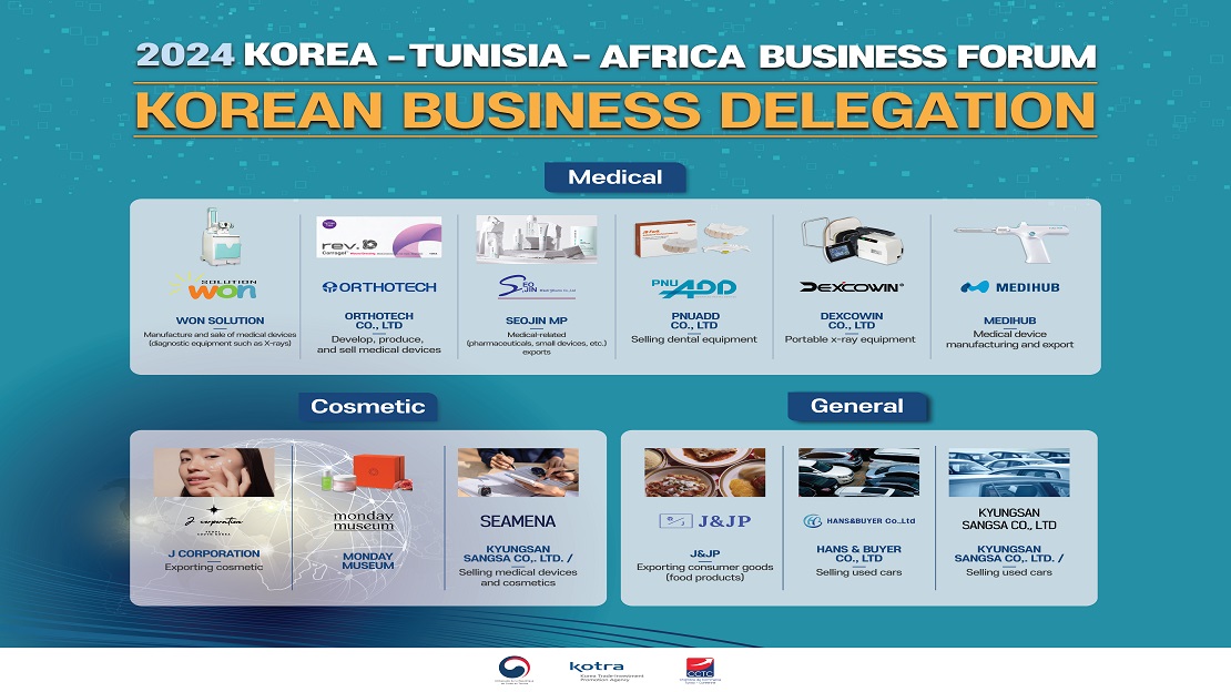ذانيوزاونلاين// تونس– يسر سفارة جمهورية كوريا بتونس بالشراكة مع مكتب كوترا الجزائر وغرفة التجارة التونسية الكورية أن تعلن عن نسخة 2024 من منتدى الأعمال الكوري التونسي الإفريقي.