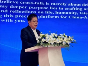 أشارت الممثلة الشهيرة، وسفيرة النوايا الحسنة للأمم المتحدة، ورئيسة تحرير مجلة "إنبرانديا" الأوروبية، إلى أن الإنترنت يُتيح للأعمال الفنية تسليط الضوء على المشاعر الإنسانية المشتركة كضوء القمر، دون الحاجة إلى ترجمة، مما يجعل السينما جسرًا يربط قلوب الصين والدول العربية. من طريق الحرير القديم حيث صدحت أجراس الجمال تحت السماء المرصعة بالنجوم والقمر، إلى الطريق السماوي الرقمي حيث انسجمت الألياف البصرية والبيانات، لطالما أبدعت الحضارتان الصينية والعربية نورًا ساطعًا يتجاوز الزمان والمكان من خلال الحوار.