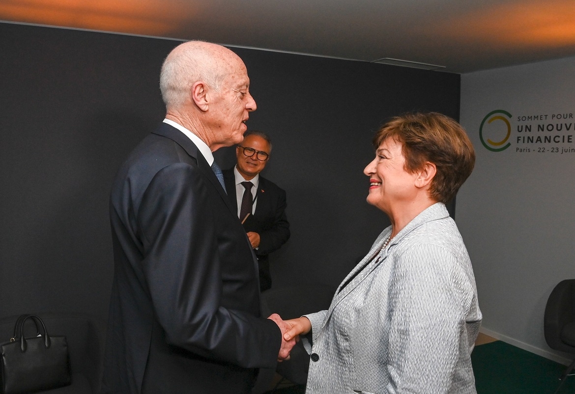 ذانيوزاونلاين// التقى رئيس الجمهورية قيس سعيد، مساء اليوم الخميس 23 جوان 2023 بباريس، السيدة كريستالينا غورغييفا، المديرة العامة لصندوق النقد الدولي.