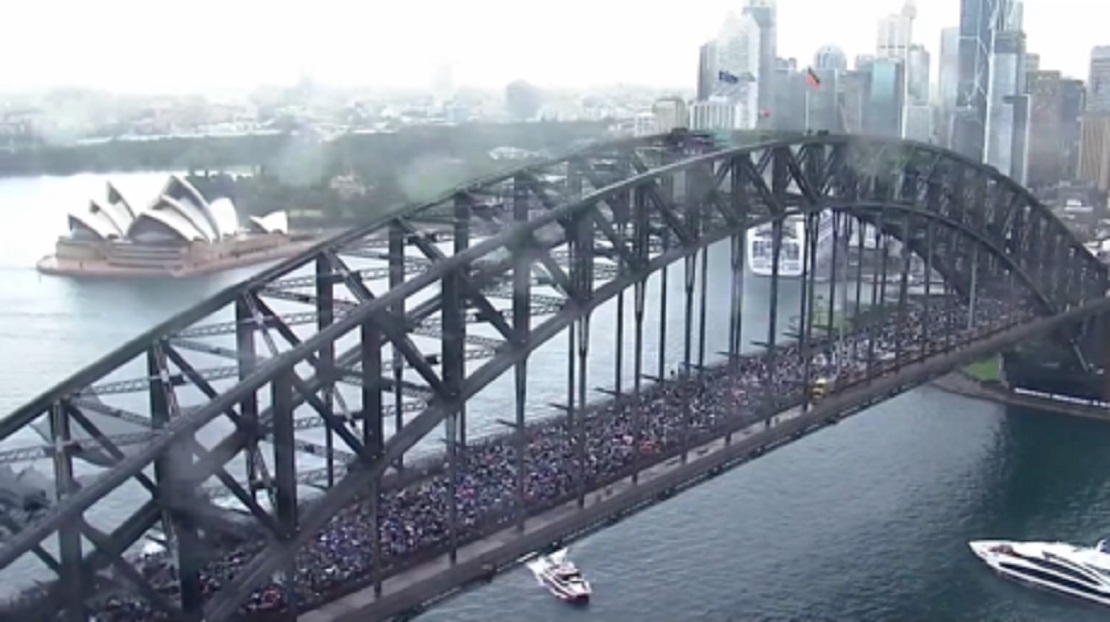 ذانيوز أونلاين// عبر الآلاف من المتظاهرين جسر ميناء سيدني اليوم الأحد في مسيرة داعمة للفلسطينيين في غزة، ونددوا بالتجويع والإبادة اللذين تمارسهما إسرائيل في القطاع.