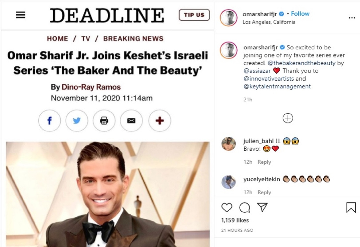 ذانيوز أونلاين// أعلن حفيد النجم المصري العالمي الراحل عمر الشريف عن انضمامه للموسم الثالث من المسلسل الإسرائيلي The Baker and the Beauty.
