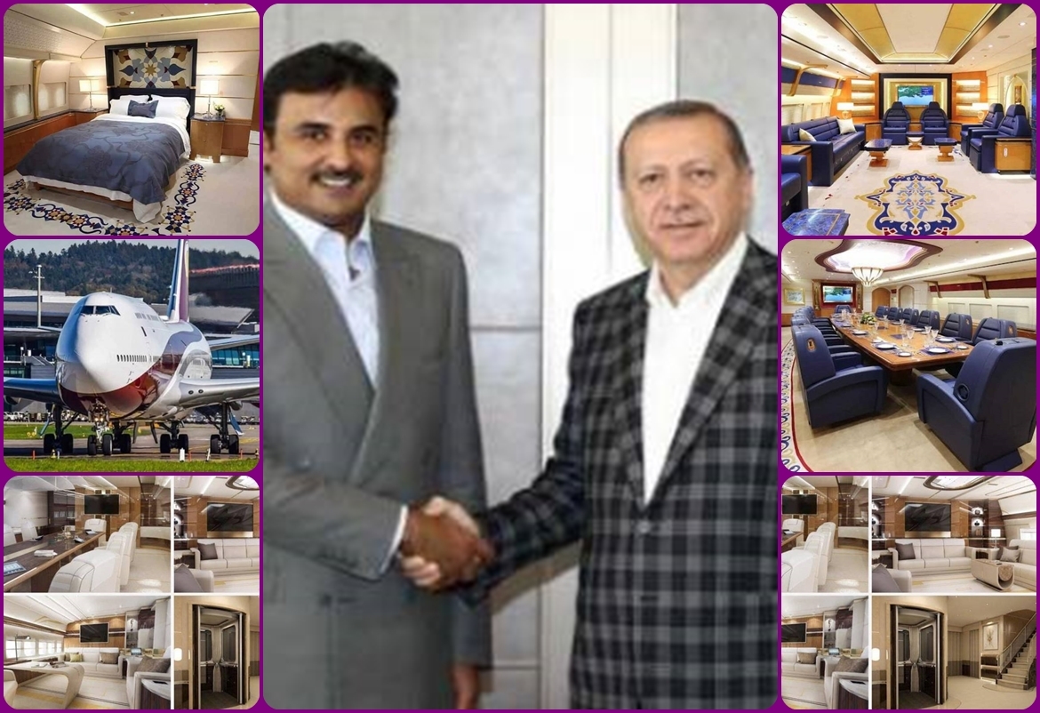 قالت وسائل إعلام تركية أن أمير قطر تميم بن حمد آل ثاني أهدى طائرة بيونغ فاخرة من طراز 8-747 للرئيس التركي رجب طيب أردوغان، يبلغ ثمنها 400 مليون دولار.