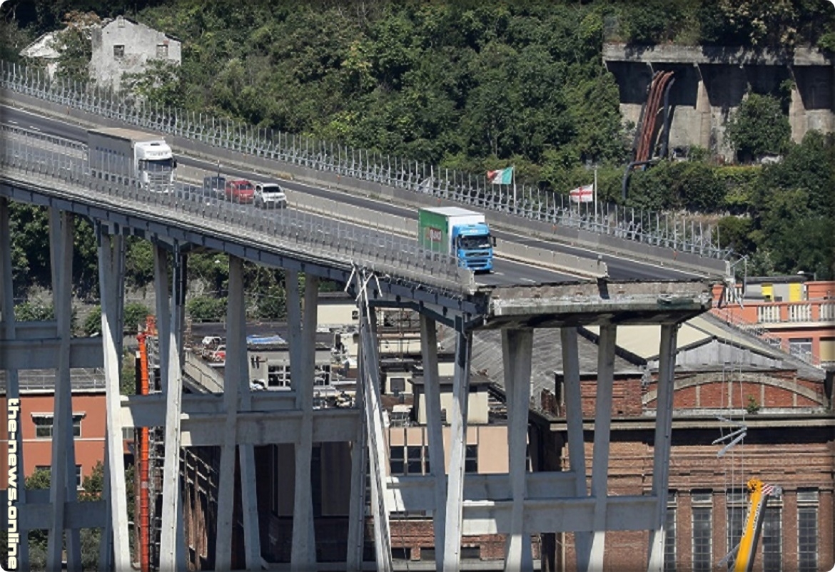 أما المشهد، فيجاور جزء من الجسر المنهار كومة أنقاض وبقايا سيارات أو شاحنات متروكة في الخلاء، إذ ان المنطقة الكائنة تحت المرفق الذي انهار الثلاثاء في جنوى تبدو غداة المأساة كأنها تعرضت لهزة أرضية.