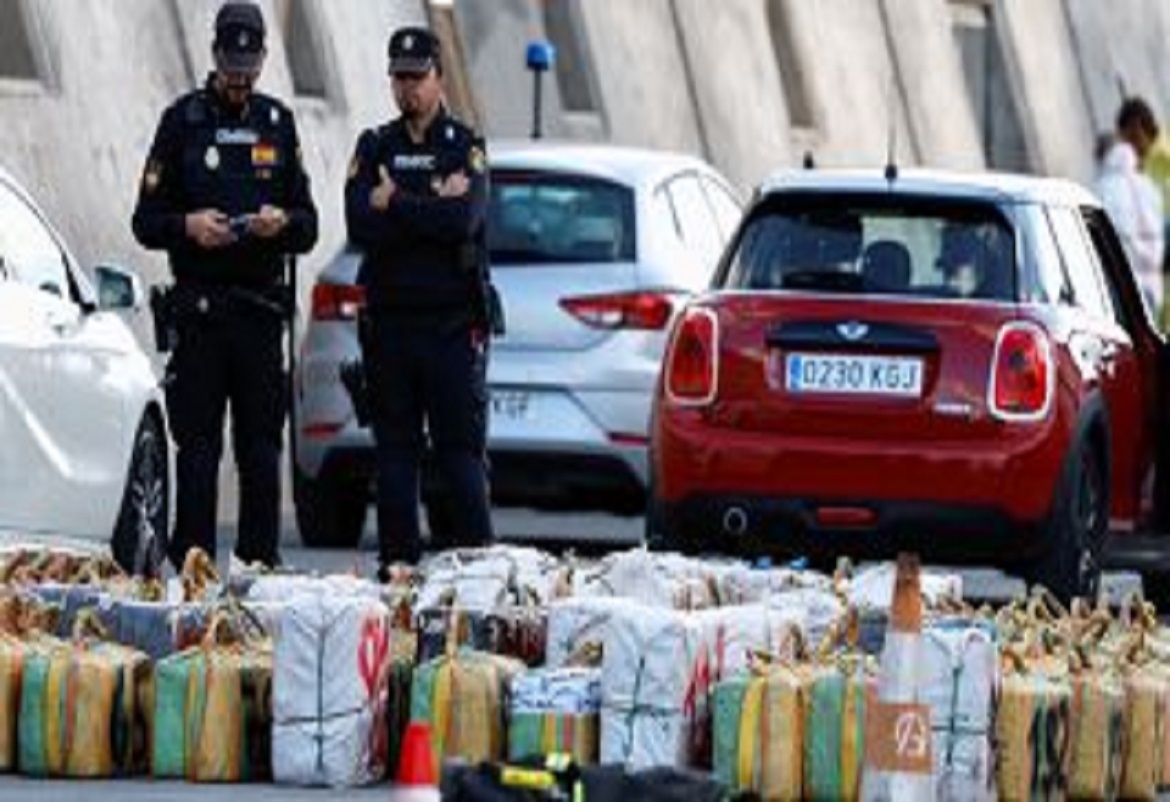 ذانيوزاونلاين// قالت الشرطة الإسبانية في بيان يوم السبت إنها صادرت 4.5 طن من الكوكايين، وهي كمية تقدر قيمتها بنحو 105 ملايين يورو (114 مليون دولار)، بعد مداهمة سفينة لنقل الماشية قبالة جزر الكناري الأسبوع الماضي.