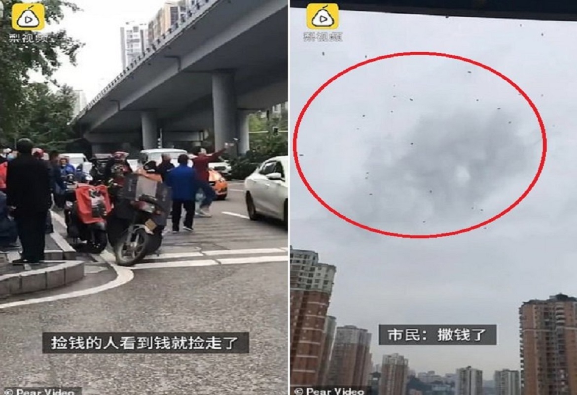 ذانيوز أونلاين// ألقت الشرطة الصينية القبض على رجل في مدينة تشونغتشينغ بعدما ألقى كمية كبيرة من النقود من نافذة شقته في الطابق الـ30، مما كان سببا في فوضى في الشارع.