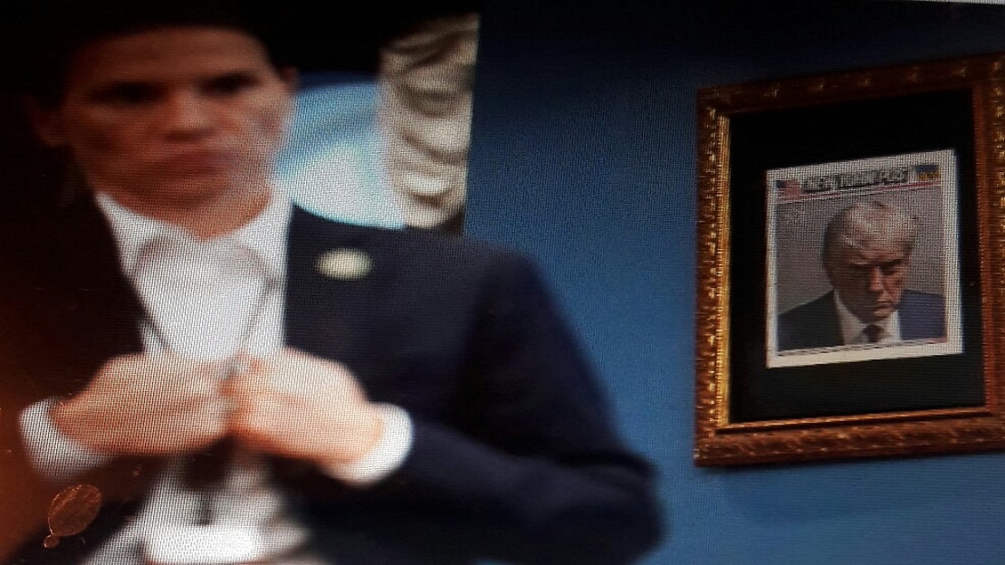 ذانيوز أونلاين// نشرت مواقع أمريكية، لقطة لأحد جدران البيت الأبيض، علقت عليه صورة الرئيس الأمريكي دونالد ترامب، والتي أخذت له لدى اعتقاله في سجن ولاية جورجيا.