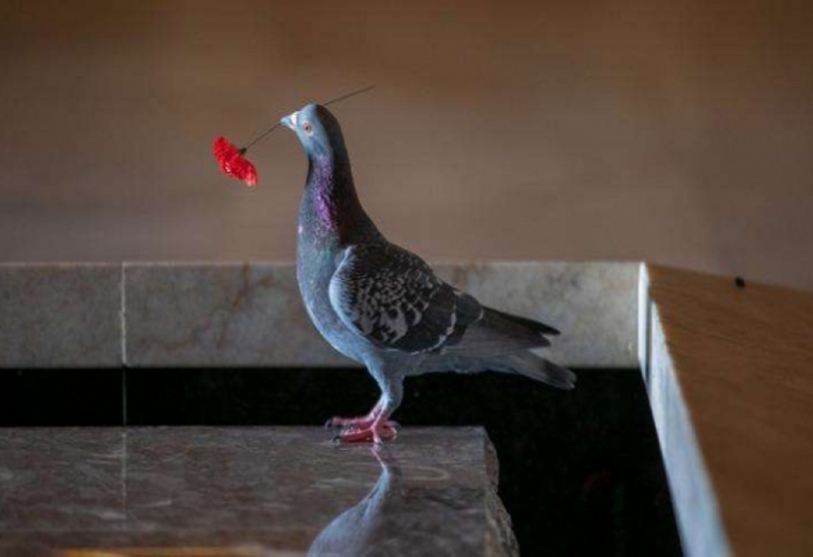 سرقت حمامة زهور الخشخاش من قبر الجندي المجهول عند النصب التذكاري الوطني بالعاصمة الأسترالية كانبيرا، واستخدمته في بناء عش ملون في المكان. وتحيط الزهور بالنصب التذكاري الوطني مع اقتراب إحياء يوم الذكرى؛ تكريما للجنود الذين سقطوا في الحرب العالمية الأولى.