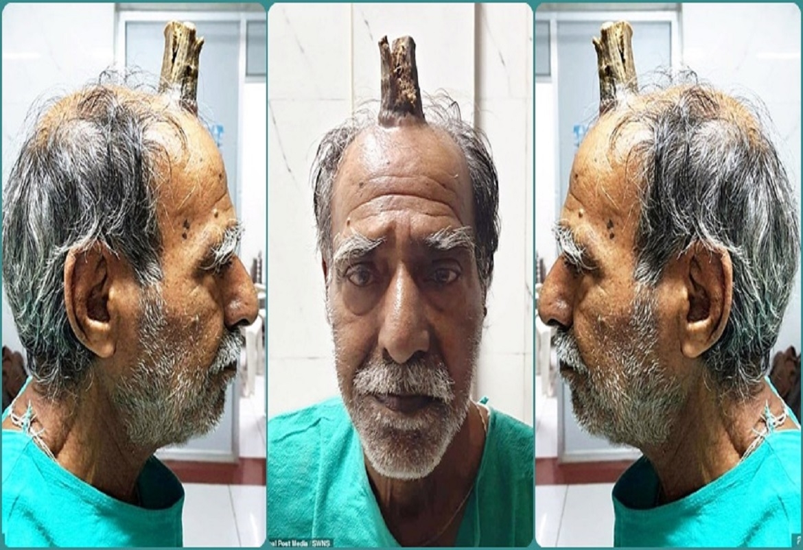 المزارع الهندي، شيام لال ياداف، البالغ من العمر 74 عامًا، من قرية راهلي في ولاية ماديا براديش بالهند، بدأ يشعر ببداية نتوء أعلى رأسه، كان يظن أنه مجرد ورم؛ ولم يعبأ كثيرًا بهذا الأمر؛ خصوصا وأن الحلاق كان يعمل على إخفائه بالشعر؛ فظل الورم تحت السيطرة.