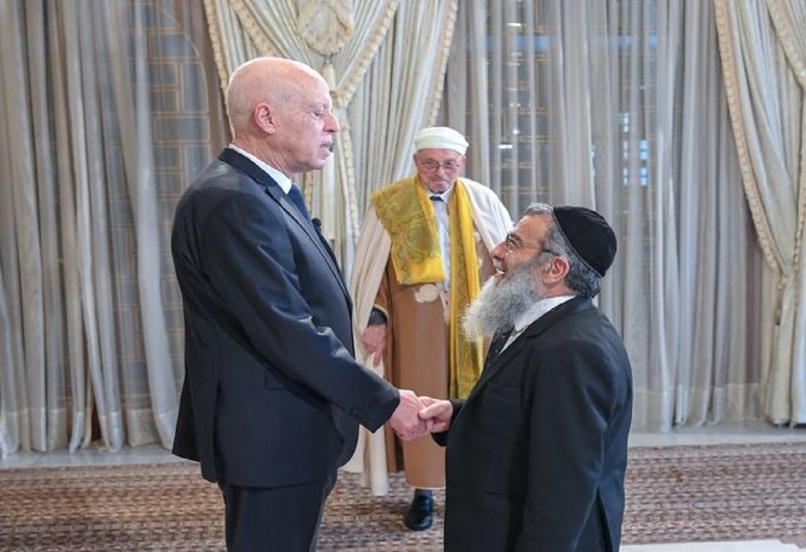 استقبال رئيس الجمهورية قيس سعيّد، اليوم الأربعاء 17 ماي 2023 بقصر قرطاج، لكلّ من سماحة الشيخ هشام بن محمود، مفتي الجمهورية التونسية، والسيّد حاييم بيتان، كبير أحبار اليهود بتونس، والسيّد إيلاريو أنطونيازي، كبير أساقفة الكنيسة الكاثوليكية بتونس.