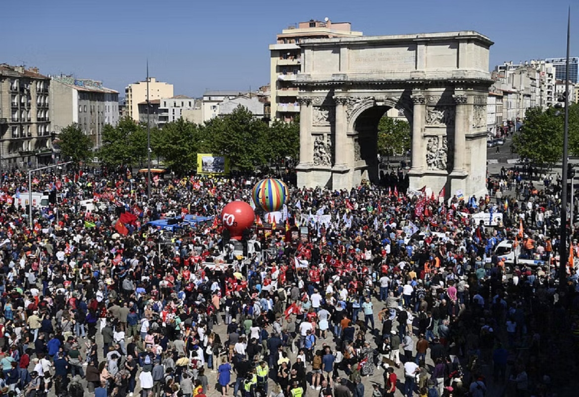 ذانيوزاونلاين// انطلقت، اليوم (الاثنين)، في عدد من المدن الفرنسية، مسيرات احتجاجية إحياءً للذكرى السنوية لعيد العمال.
