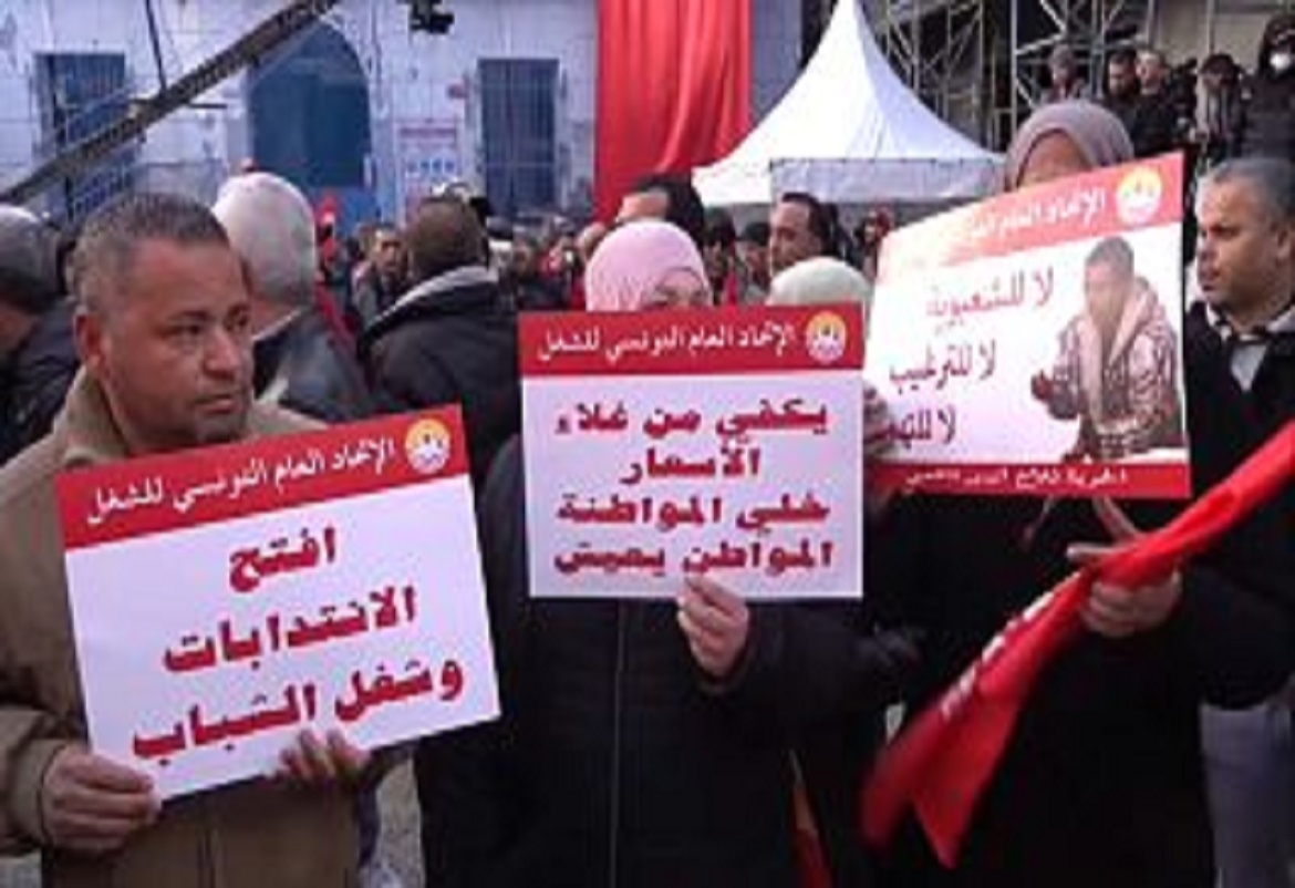 ذانيوزاونلاين// تظاهر مئات الأشخاص في تونس السبت للتنديد بسياسات الرئيس قيس سعيّد، وذلك بناء على دعوة من "الاتحاد العام التونسي للشغل"، أكبر منظمة نقابية، مردّدين هتافات تطالب بالحريات وتدعو سعيد الى "الحوار".