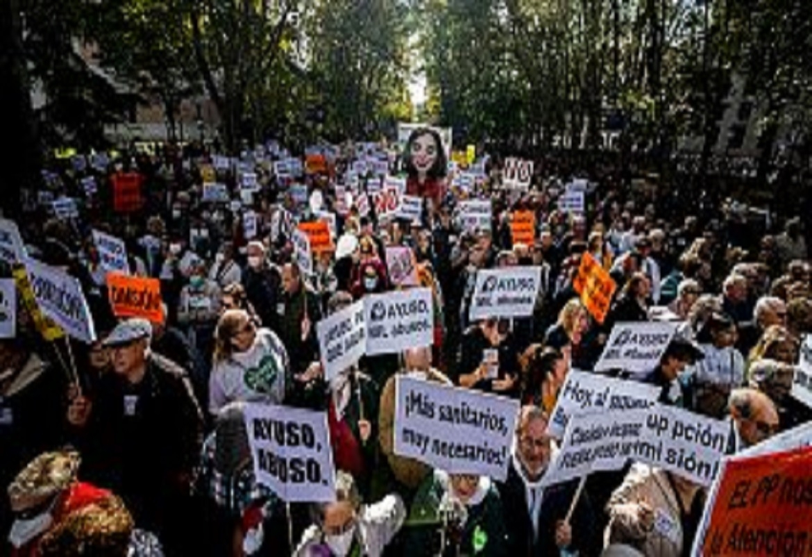 ذانيوزأونلاين//شارك عشرات آلاف العاملين في القطاع الصحي الإسباني، في مظاهرة وسط العاصمة مدريد، ضد ما يقولون إنه تدمير الحكومة الإقليمية المحافظة لنظام الصحة العامة الذي يشهد أساساً أزمة على أصعدة عدة.