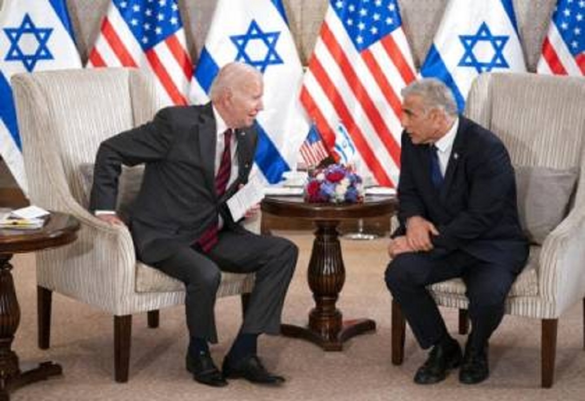 ذانيوز اونلاين// قال الرئيس الأميركي، جو بايدن، في نهاية لقائه مع رئيس الحكومة الإسرائيلية، يائير لبيد، اليوم الخميس، إن الولايات المتحدة ملتزمة "بالاستثمار بأمن إسرائيل". وقال لبيد إنه إنه تحدث مع الرئيس الأميركي حول السعودية وأنهما "يحاولان بناء تحالف معتدل".
