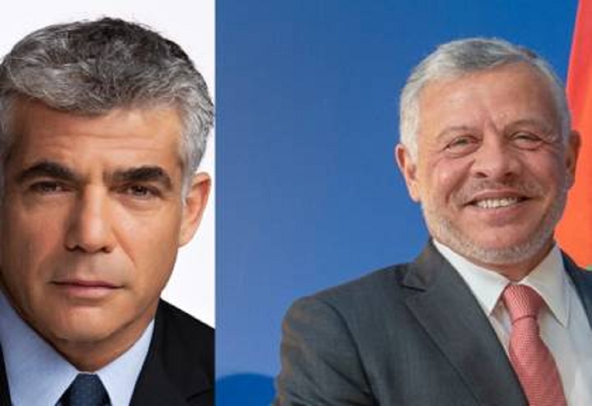 ذانيوز اونلاين// أجرى رئيس الوزراء الإسرائيلي يائير لابيد محادثة هاتفية مع العاهل الأردني الملك عبد الله الثاني، مساء السبت، لأول مرة منذ توليه منصب رئيس الحكومة.