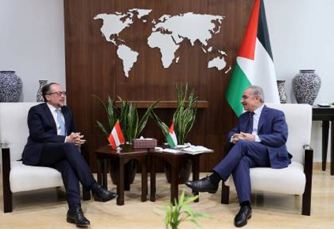 ذانيوز اونلاين// بحث رئيس الوزراء محمد اشتية مع وزير الخارجية النمساوي ألكسندر شالنبرغ، اليوم الثلاثاء، في مكتبه برام الله، العلاقات الثنائية والتطورات السياسية، بحضور وزير الخارجية والمغتربين رياض المالكي وممثلة النمسا لدى فلسطين استريد فين.