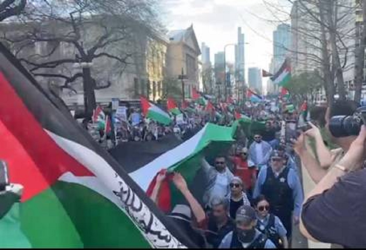 ذانيوز أونلاين// نظم التحالف من أجل العدالة في فلسطين، اليوم الأحد، تظاهرة حاشدة، جابت شوارع رئيسية وسط مدينة شيكاغو.