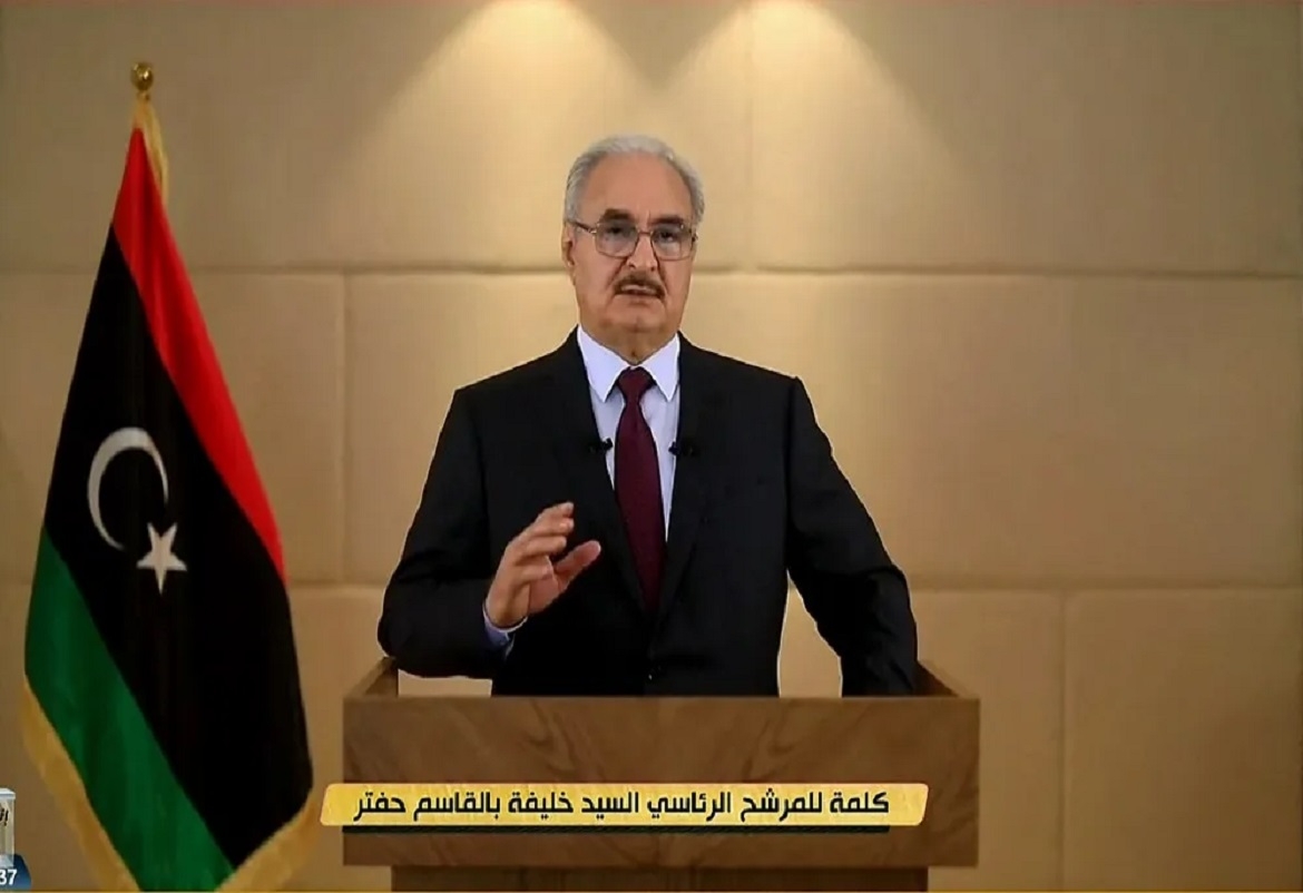 ذانيوز اونلاين// أعلن المشير خليفة حفتر، صباح اليوم الثلاثاء، تقدمه بأوراق ترشحه للانتخابات الرئاسية الليبية، قائلا في كلمة مسجلة: "أترشح للانتخابات ليس طلبا للسلطة ولكن لقيادة الشعب في هذه المرحلة المصيرية"واضاف "لدينا أفكار لا تنضب في حال قُدر لنا الفوز بالانتخابات الرئاسية".