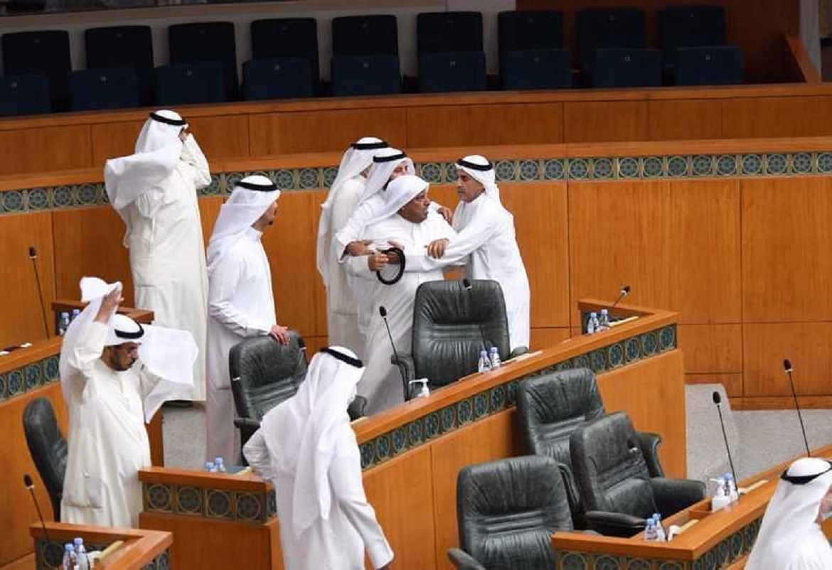 ذانيوز أونلاين// تخلل جلسة مجلس الأمة الكويتي، اليوم (الثلاثاء)، عراك بالأيدي بين النائبين، سلمان الحليلة وصالح المطيري، بعد مشادة حادة وتوتر بين النواب الذين انقسمت مواقفهم تجاه الجلسة.