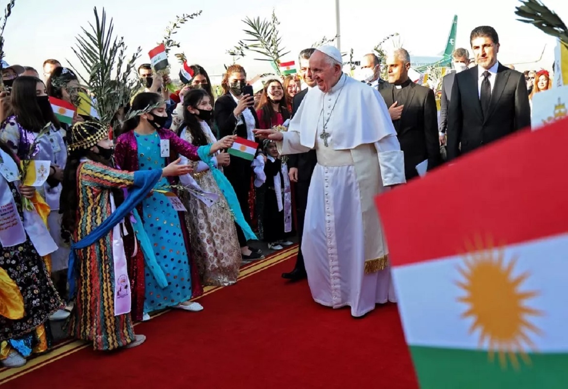 ذانيوز أونلاين// وصل البابا فرنسيس الأحد في اليوم الثالث من زيارته التاريخية للعراق، إلى أربيل في الشمال، حيث يحيي قداساً في الهواء الطلق يضمّ الآلاف بعد أن يزور الموصل وقرقوش اللتين عانتا على مدى ثلاث سنوات من انتهاكات تنظيم الدولة الإسلامية.