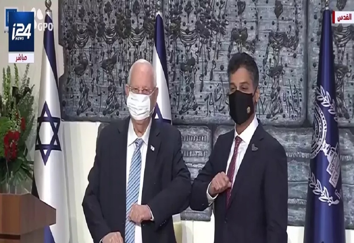 ذانيوز اونلاين// سلم أول سفير اماراتي لدى اسرائيل اوراق اعتماده للرئيس الاسرائيلي رؤوفين ريفلين اليوم في مراسم رسمية في مقره في مدينة القدس، وخلال كلمته اعرب الرئيس الاسرائيلي عن سعادته باستقبال السفير الاماراتي محمد ال خاجة، داعيا ولي العهد الاماراتي محمد بن زايد الى زيارة اسرائيل ومدينة القدس.