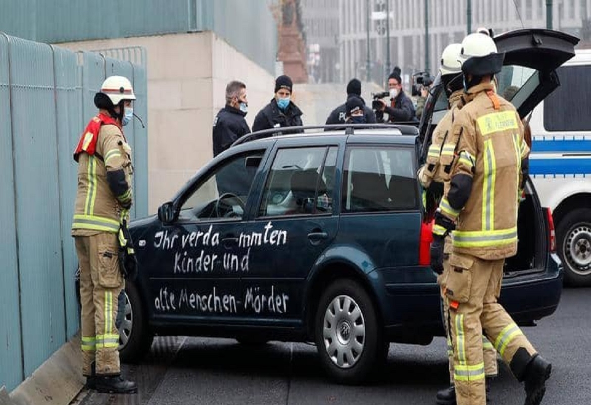 ذانيوز أونلاين// وقعت محاولة اقتحام لمقر المستشارة الألمانية أنغيلا ميركل في برلين، بوسطة سيارة مكتوب عليها عبارات غاضبة على الجانبين، واصطدمت بالبوابة.
