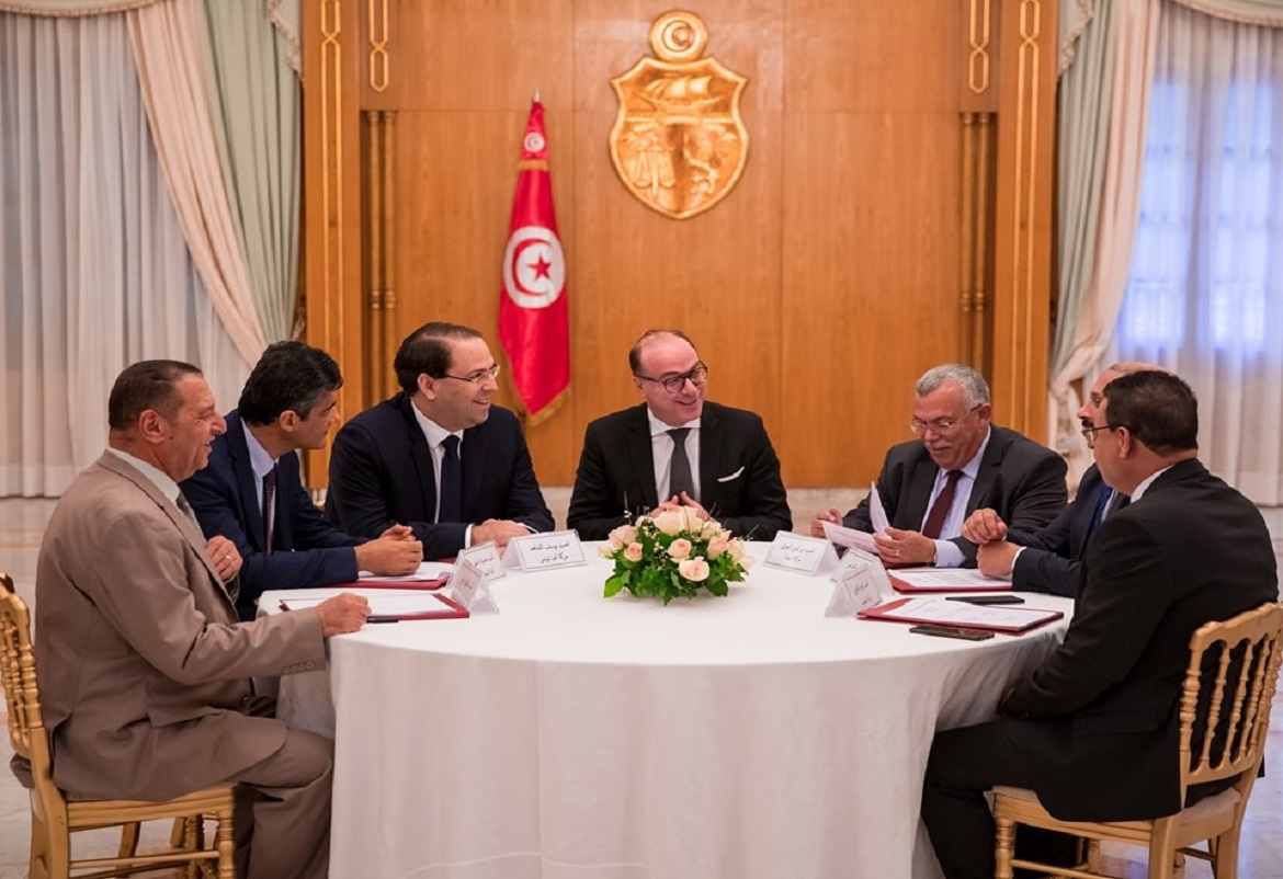 ذانيوز أونلاين: انتظم مساء اليوم بدار الضيافة بقرطاج حفل توقيع مذكرة التعاقد بين الأحزاب والكتل البرلمانية المكونة للائتلاف الحكومي .