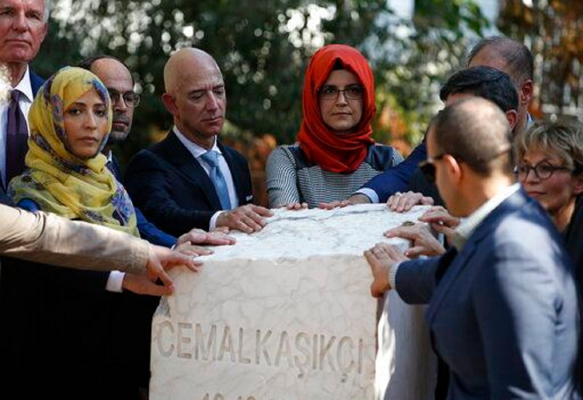 شارك مالك صحيفة "واشنطن بوست" ومؤسس موقع "أمازون" جيف بيزوس الأربعاء في إحياء الذكرى الأولى لمقتل الصحافي جمال خاشقجي والتي نظّمت أمام مقرّ القنصلية السعودية في اسطنبول.