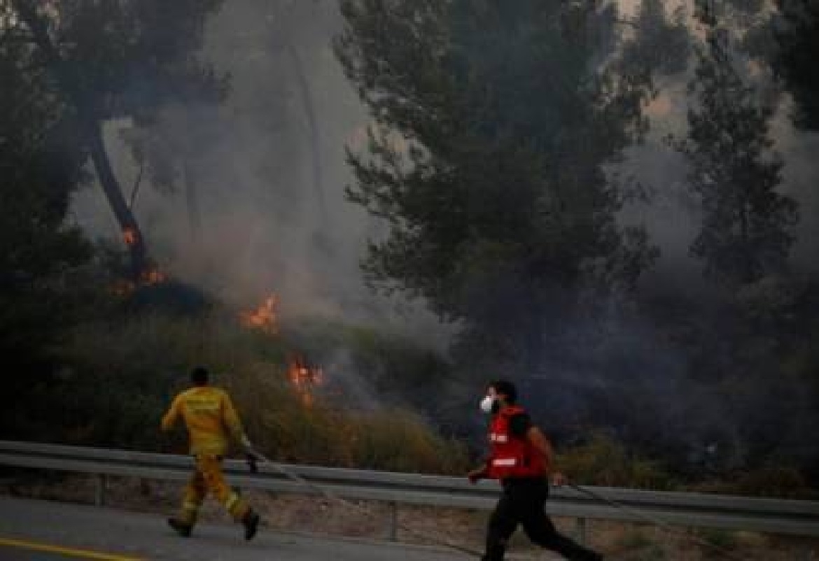 تشهد منطقة وسط إسرائيل حرائق اليوم الجمعة نتيجة لموجة حارة وصلت فيها درحة الحرارة إلى 50 درجة مئوية.
