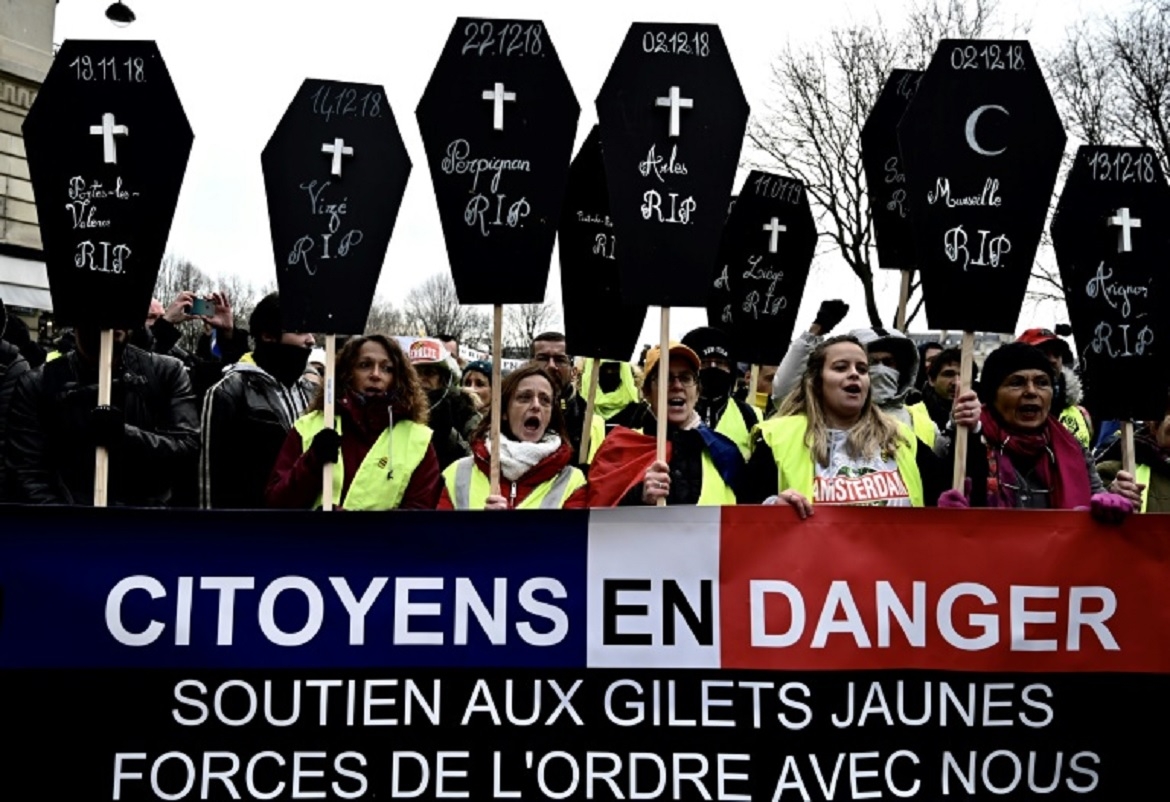 تظاهر عشرات الآلاف من محتجي "السترات الصفراء" للسبت العاشر في مختلف أنحاء فرنسا، رغم بدء الرئيس ايمانويل ماكرون "النقاش الكبير" الذي يبدو أنه لم يهدئ الغضب الشعبي المستمر منذ أكثر من شهرين.