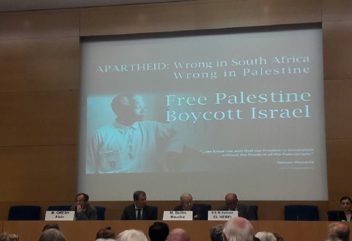تحت قُبّة مجلس الشيوخ الفرنسي عُقِدت الندوة السنويه ل لجنة متابعة السلام في الشرق الأوسط"CVPR" مُشاركة مع موقِع أورينت21"OrientXXI"، تحت عنوان " فلسطين من الإنكار إلى الأبارتهايد" بحضور قانونيين و رجال سياسية وأكاديميين من عديد الجنسيات، يوم 13 أكتوبر 2018، تم خلالها إستعراض اوجُه التمييز العنصري "ابرتهايد" الذي تمارسه إسرائيل على غير اليهود عامة و الفلسطينيين بشكل خاص.