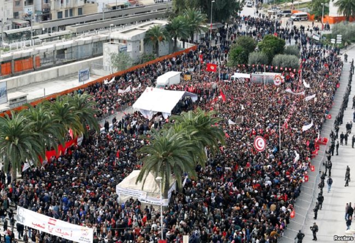أغلقت المدارس والجامعات أبوابها وأضرب العاملون في المستشفيات العامة إضافة للوزارات. وحافظت بعض الخدمات على الحد الأدنى لتسيير العمل في أكبر احتجاج نقابي في السنوات الأخيرة يقوده اتحاد الشغل الذي يضم حوالي مليون عضو.