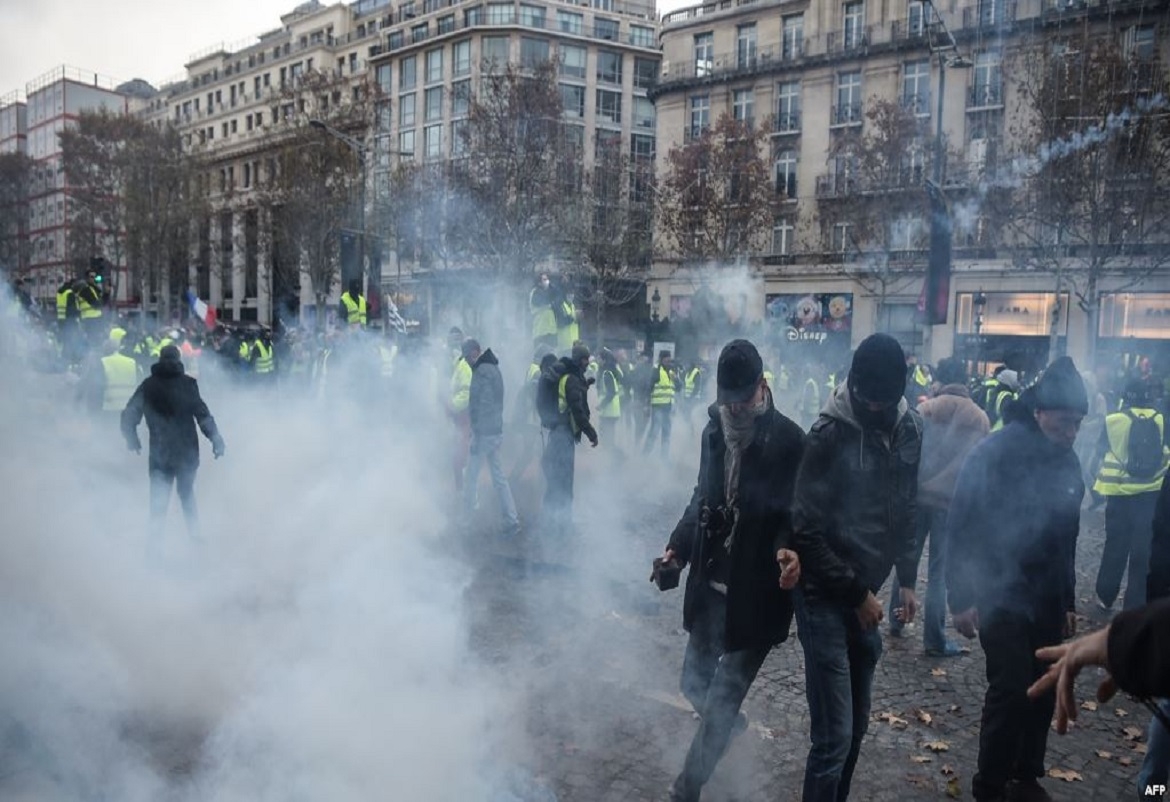وتمثل هذه الاحتجاجات التي تخللتها أعمال عنف تحديا كبيرا لماكرون حيث تجذب متظاهرين متباينين بدون قائد أو مهمة واضحة. وتخللت احتجاجات السبت في جادة الشانزليزيه في العاصمة باريس أحداث عنف وصدامات بين المتظاهرين والشرطة.