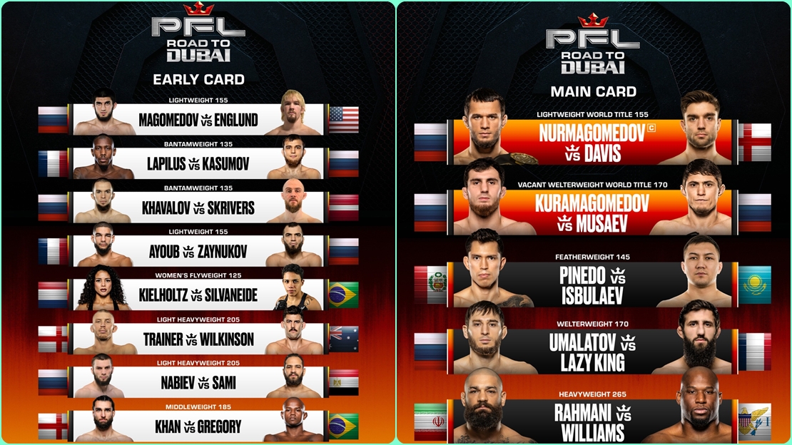 ذانيوز أونلاين//تحتضن دبي ثالث بطولات رابطة المقاتلين المحترفين «الطريق إلى دبي»، وذلك بتنظيم مشترك بين رابطة المقاتلين المحترفين، ومجلس دبي الرياضي، ودائرة الاقتصاد والسياحة بدبي، يوم السبت 7 فبراير 2026، في صالة كوكاكولا أرينا، ضمن حدث رياضي عالمي يعكس المكانة المتقدمة التي تحتلها الإمارة على خريطة الفنون القتالية المختلطة.